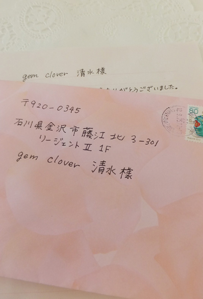 土曜日に久しぶりに出勤したらお手紙が届いていました。