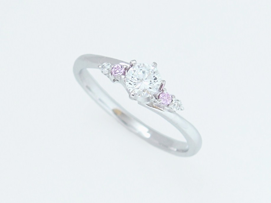 左右の天然ピンクダイヤが確かな存在感を放っています。