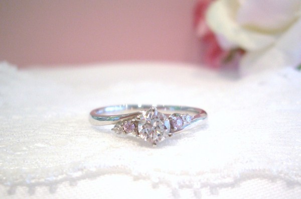 天然ピンクダイヤとホワイトダイヤのコントラスト